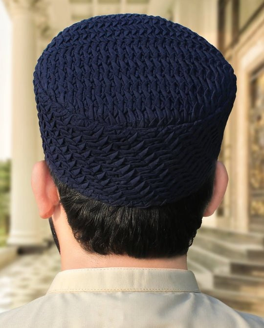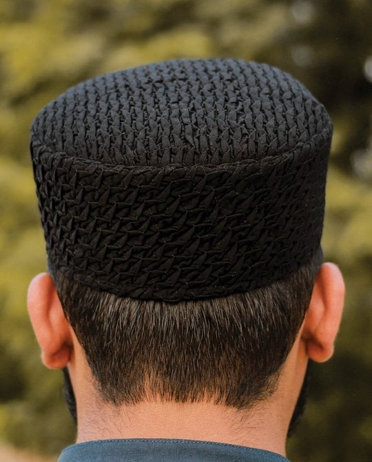 This handmade prayer cap features a stylish, textured design crafted from premium cotton. Its intricate pattern adds a touch of elegance while maintaining the simplicity ideal for daily use. Lightweight and breathable, this cap ensures all-day comfort while offering a secure fit. It's also fully washable, making it easy to maintain and perfect for regular wear. This cap complements any outfit while providing both style and practicality during prayers.
